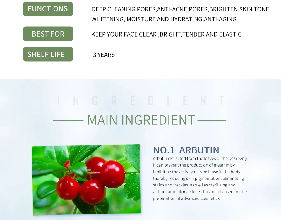 | Ingredient | Arbutin extract, Rose extract |