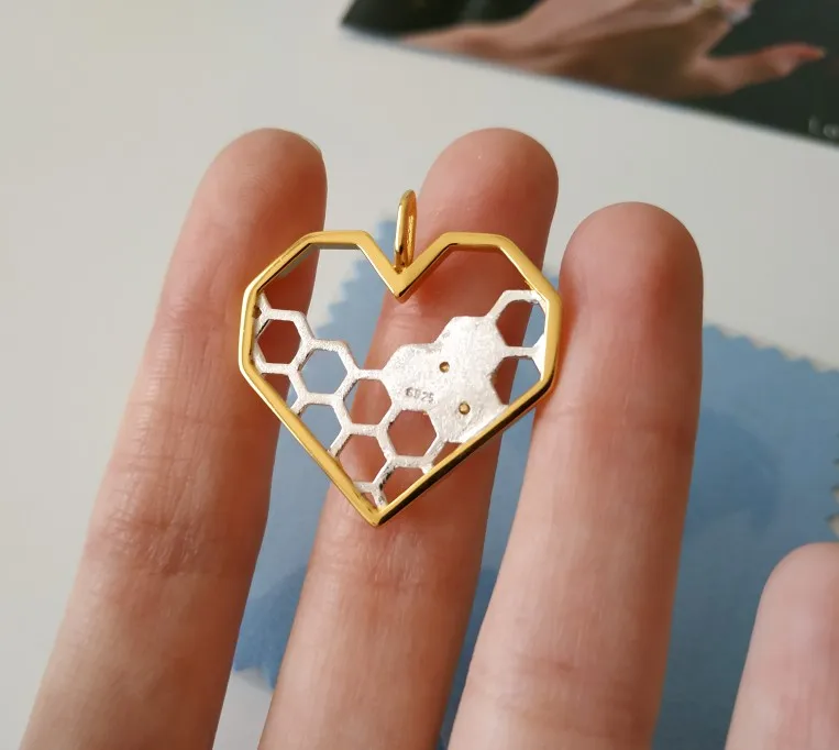 Lovely pendant, i thought it was super nice and i ‘ve been following it for quite some time. I finally bought it and i’m really happy. The pendant is exactly the same as the photos, the details are very careful, it looks great quality. The golden parts are very bright and contrast with the silver, which has a smoother effect. From behind you can see the s925 seal (i.e. sterling silver) has two very small flaws, but they don’t see each other if you don’t look closely. I recommend the seller and their beautiful and original designs!