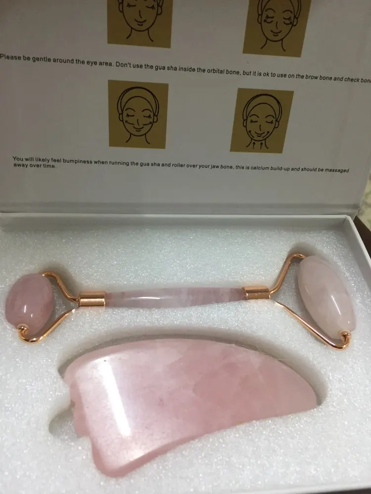 Rose Quartz Roller Slimming Face Massager Lifting Tool Natural Jade Facial Roller Stone Skin Beauty Care Set for Birthday Gift